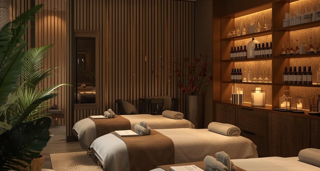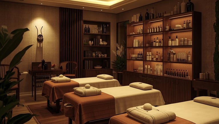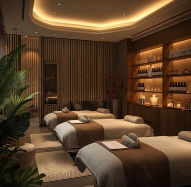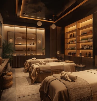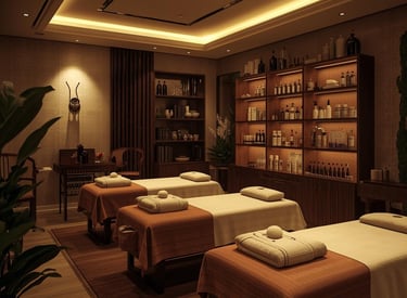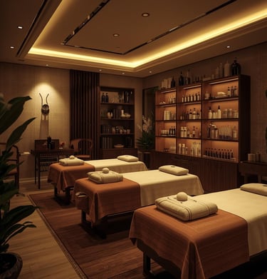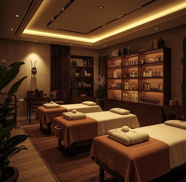 용인출장마사지 테라피의 고급스러운 공간과 다양한 마사지 장면들